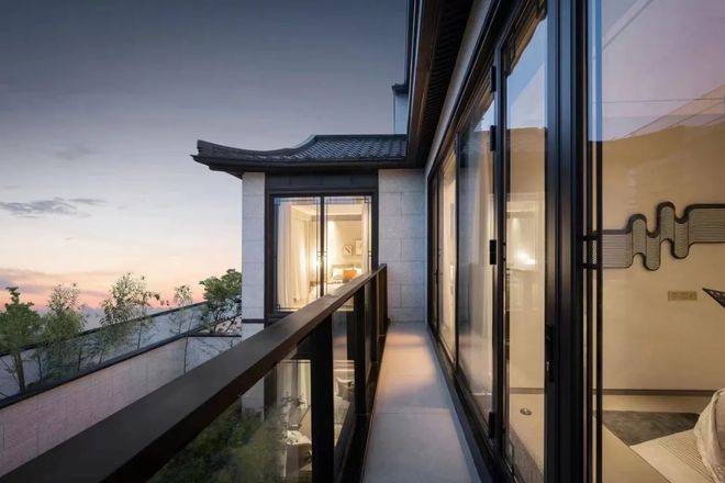 建筑立面的设计同样精彩。浅色石材的外立面上覆盖着日式合瓦屋面,搭配深色金属构件,使得色彩构成冷暖相宜,典雅而简约。歇山、硬山和小披檐等建筑手法丰富了建筑造型与空间,与周围的山水环境完美融合,宛如一幅幅江南水乡静谧风雅的生活画卷。