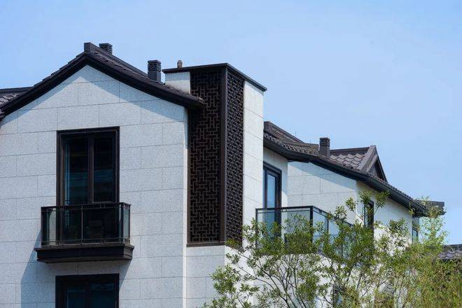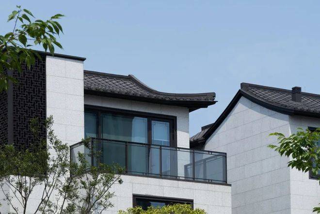 大丽和和中心的中式美学院落,其立面造型在徽派建筑的基础上融入了当代元素。它将古典建筑中的粉墙黛瓦与自然景观的色彩搭配与对比相结合,同时结合现代风格建筑,打造出形神兼备、充满时代气息的新中式建筑。