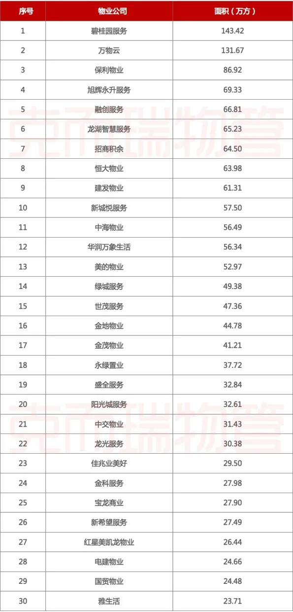 克而瑞物管数据显示,2020年已经有25家物业服务企业合约规模过亿,20家物业服务企业在管规模过亿,在管规模TOP30门槛值已经高达5839万方。